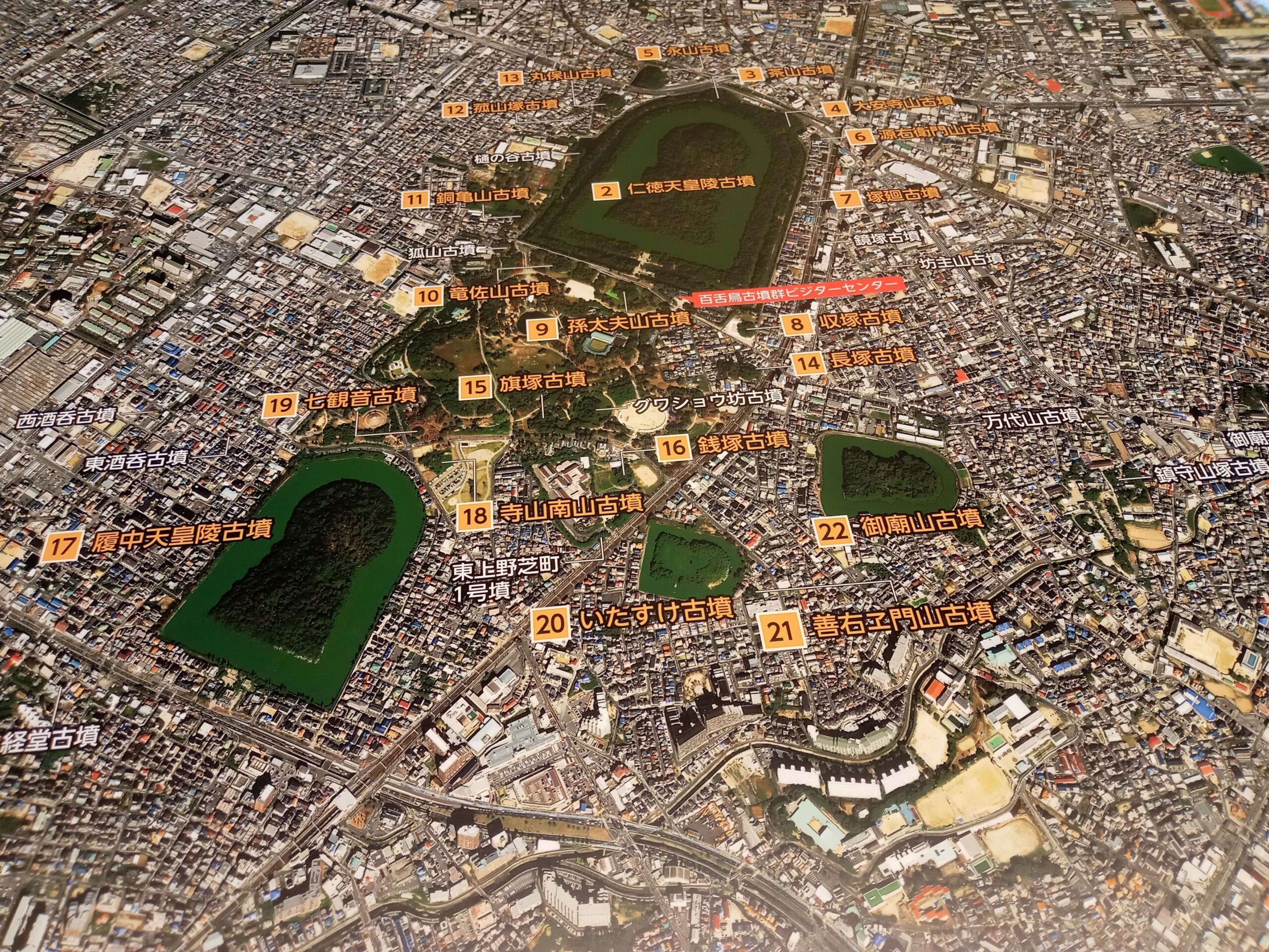 まずは、私の生まれ故郷の堺市にある百舌鳥古墳群の写真を掲載します。この写真は仁徳天皇陵古墳の前にあるビジターセンターにある写真を撮ってきたものです。
